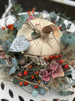 Die Ummantelung (gesteckter Kranz) ist ein Schmuckstück das auch eingetrocknet lange Zeit Freude bereitet.
