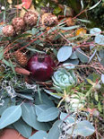 Wie vom Waldspaziergang, Natur pur. Mit Waldreben, Zweigen, Rinden, Zapfen, Zieräpfel, Hagenbutten und frischen Blumen gestalten wir mit diesen Naturschätzen ein besonderes Werkstück. Gesteckt, gewunden oder gebunden.