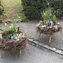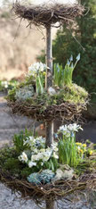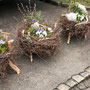 Kursmaterialien: Draht, div. Naturmaterialien, Moos, Erde, Töpfchen, Helleborus, verschiedenen Frühlingsblumen, Zwiebelblühern.