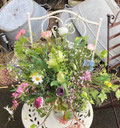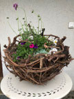 Das wunderschöne und natürliche Objekt bepflanzen wir mit saisonalen Blumen. Dieses lang haltbare Werkstück kann saisonal neu bepflanzt oder dekoriert werden. Wer möchte gestaltet dazu ein Gestell aus Rebstöcken oder Schwemmhölzer.