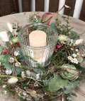 Frühlingstraum. Mit Eukalyptus, Blumen, Gräser, Trockenblumen und anderen frischen, haltbaren Naturmaterialien binden wir einen Kranz, der auch eingetrocknet lange Zeit seinen wunderbaren Charm behält. Die Technik des Kranzbindens und ein sorgfältiger, fachgerechter Umgang mit den verwendeten floralen Werkstoffe will jedoch gelernt sein. Das wunderbar duftende Schmuckstück mit Frühlingsboten behält auch eingetrocknet lange Zeit seinen wunderbaren Charm. Mit Glas und Kerze ausgeschmückt. Bei der Anmeldung den Farbenwunsch angeben.