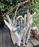 3 Sommerlicht; Schwemmholz-Glas-Windlicht