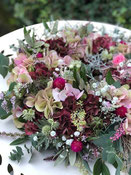 Damit liegt Ihr garantiert immer noch voll im Trend. Getrocknete Blumen kommen mit frischen Floralien und im Eukalyptus immer ganz gross heraus. Mit Bändern ausgeschmückt ein wunderschönes lang haltbares Werkstück.