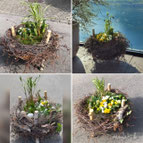 Sie erlernen: Das fachgerechte Gestalten, Winden, Binden und Flechten der verschiedenen Naturmaterialien. Dekorieren, Ausschmücken, Bepflanzen der Frühlingsblumen in verschiedenen Töpfchen.
