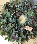 Der geliebte Dauerbrenner. Mit verschiedenen herrlich duftenden Eukalyptussorten und anderen Naturmaterialien binden wir einen Kranz (ca. 35-40cm). Das wunderbar duftende Schmuckstück behält auch eingetrocknet lange Zeit seinen Charm. Ein hübscher Blickfang ob liegend oder hängend.